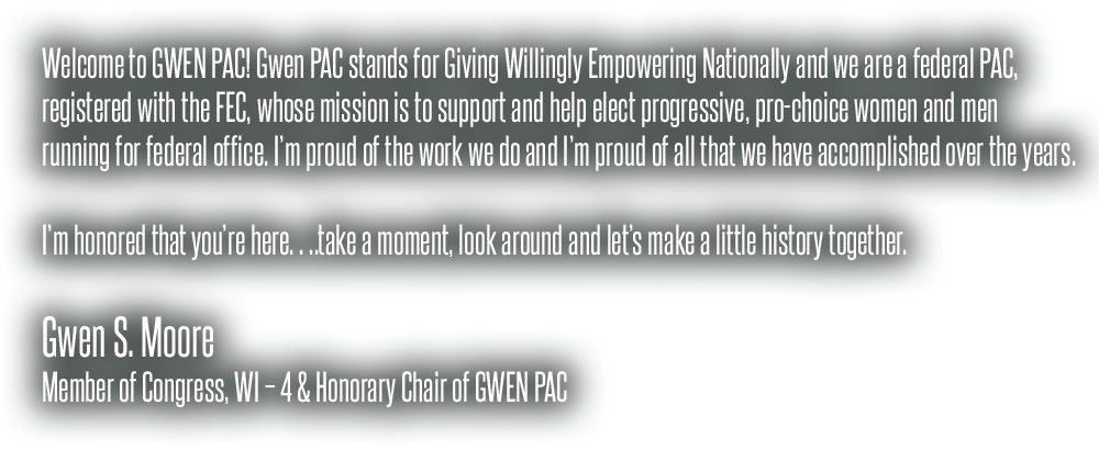 GWEN PAC proudly supports and helps elect progressive, pro-choice Democratic candidates to the US House and Senate.